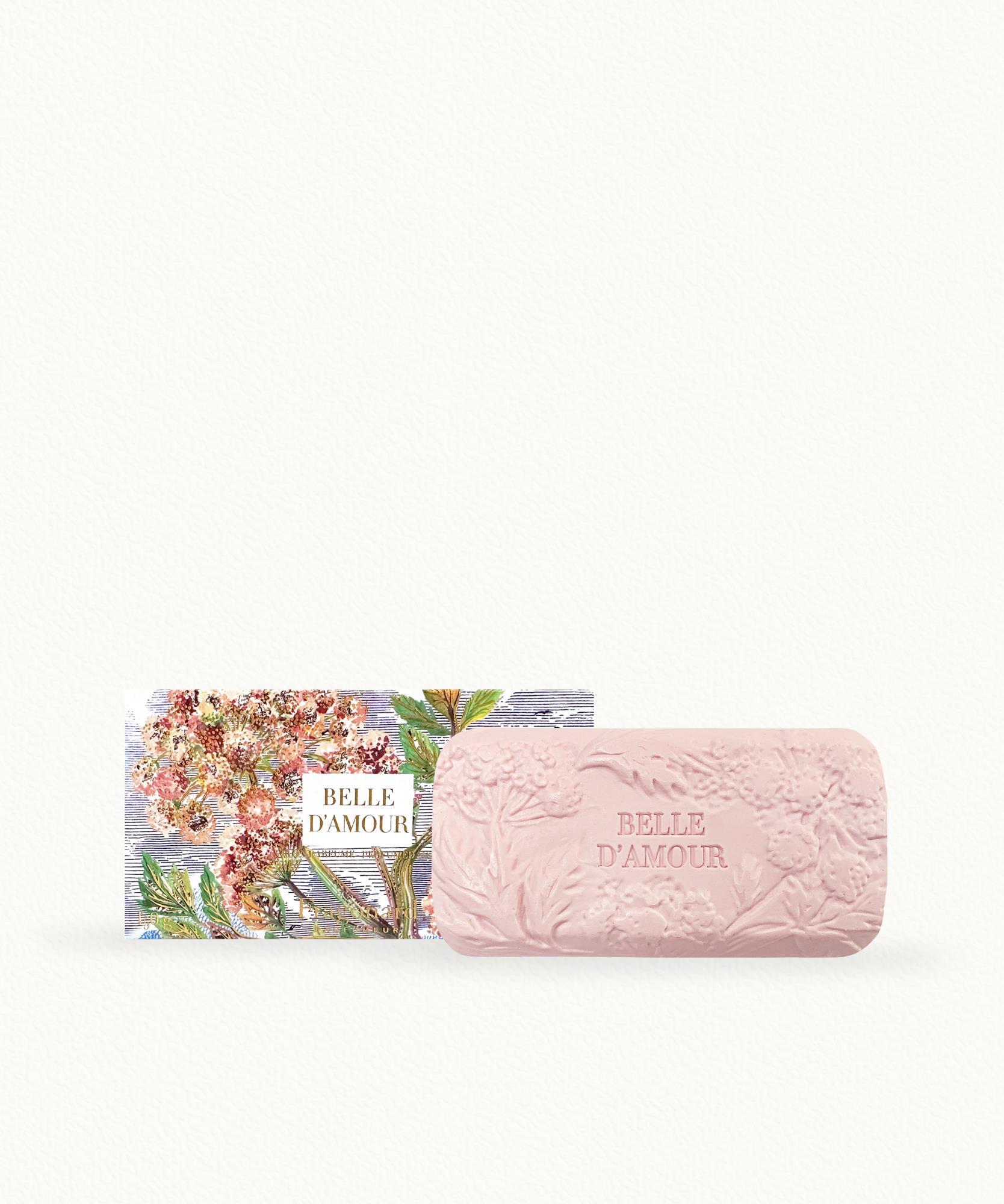 Diese elegante Duftseife ist Schönheitsprodukt und Dekorationsobjekt zugleich. Sie ist mit den Blüten der Engelwurz, der Königin der Belle-d’Amour-Linie, graviert. Der blumig-köstliche Wohlgeruch dieser Seife verleiht den Händen einen angenehmen Duft, während auch die Reinigungswirkung überzeugt. Das großzügige Format sorgt dafür, dass Sie den lieblichen Duft dieser hübschen, wohlriechenden Seife mit ihrer rosafarbenen Robe über lange Zeit genießen können.