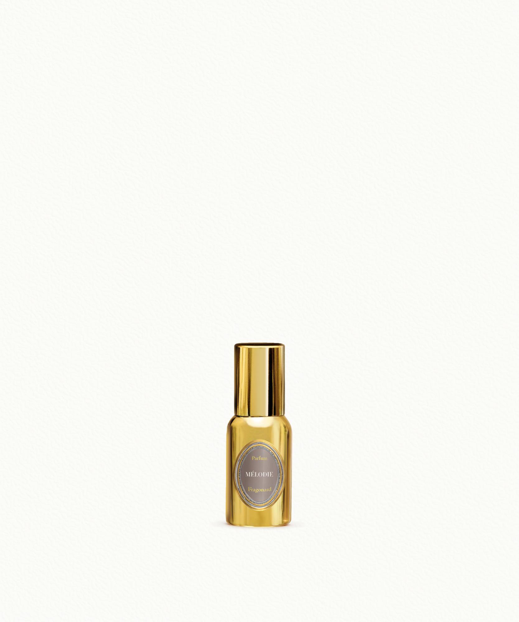 Nuestro perfume de mujer Mélodie, en su elegante frasco de aluminio dorado de 15 ml, puede llevarse a todas partes, guardado en el bolso. Este pequeño formato, práctico y sofisticado, permite disfrutar durante todo el día de las notas florales afrutadas de este perfume dinamizadas por los chispeantes acordes de frambuesa y bergamota italiana.